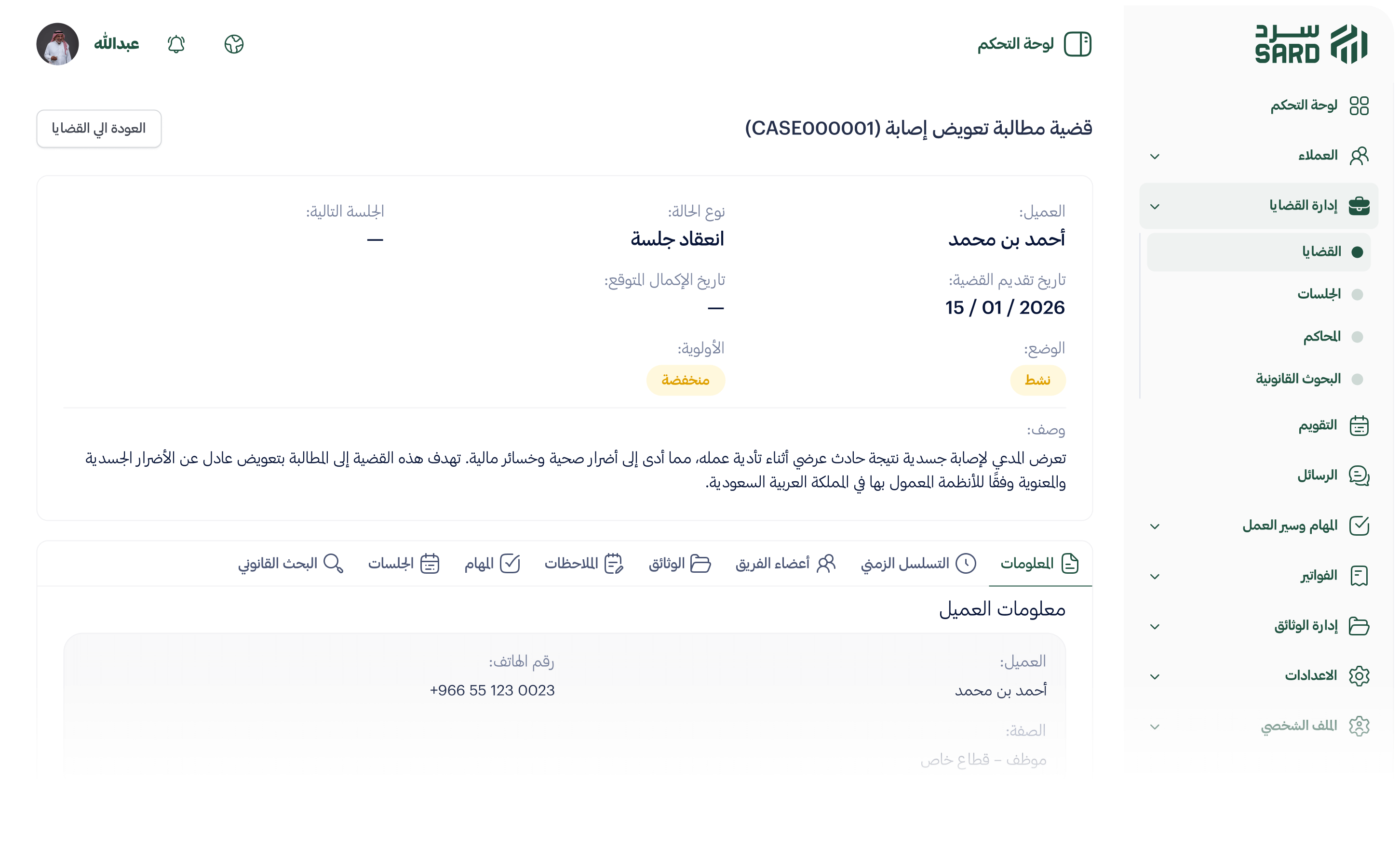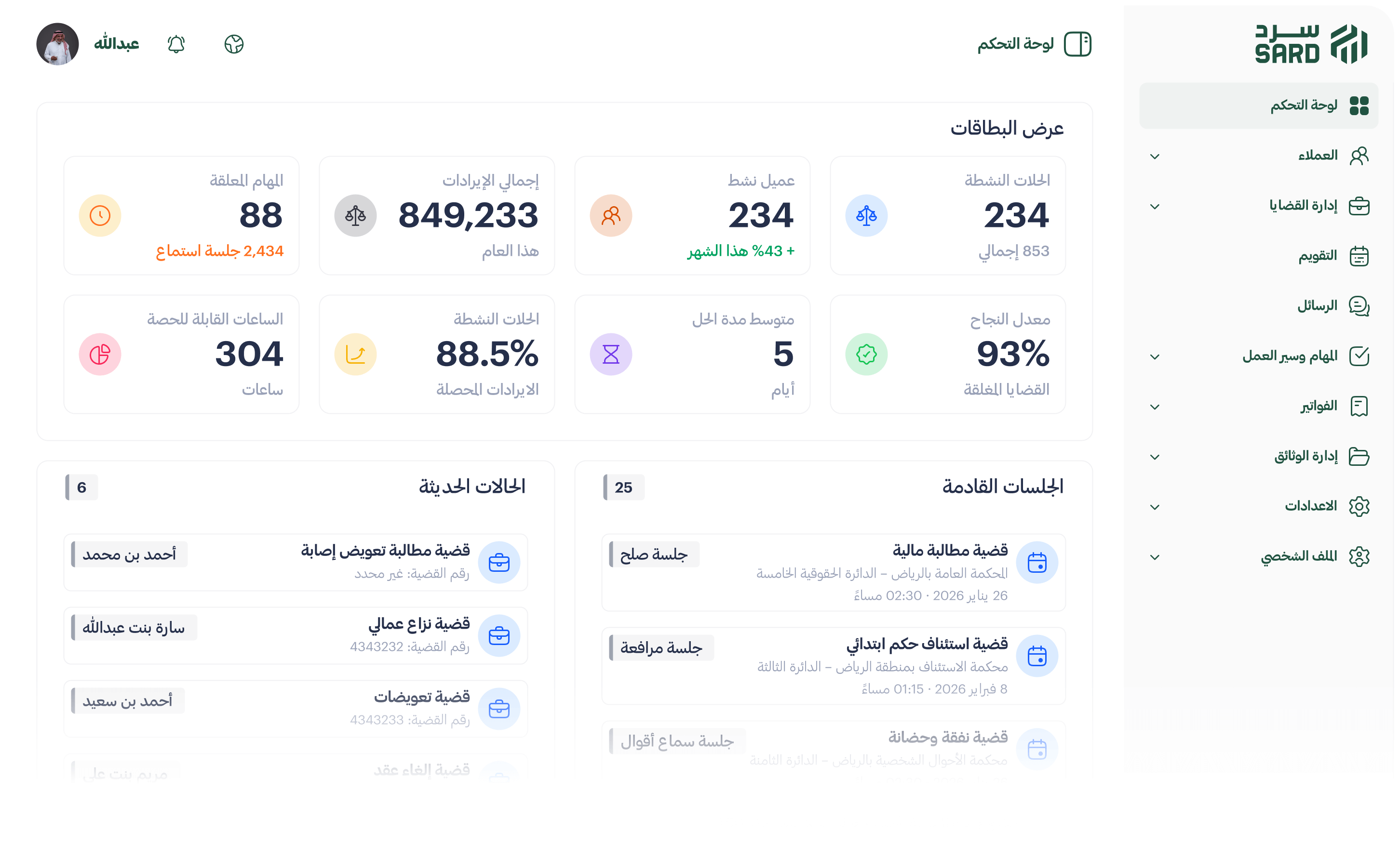 تابع نطاق العمل القانوني، وسرعة إغلاق الملفات، والتقدّم المحرز في كل قضية عبر تقارير ذكية.