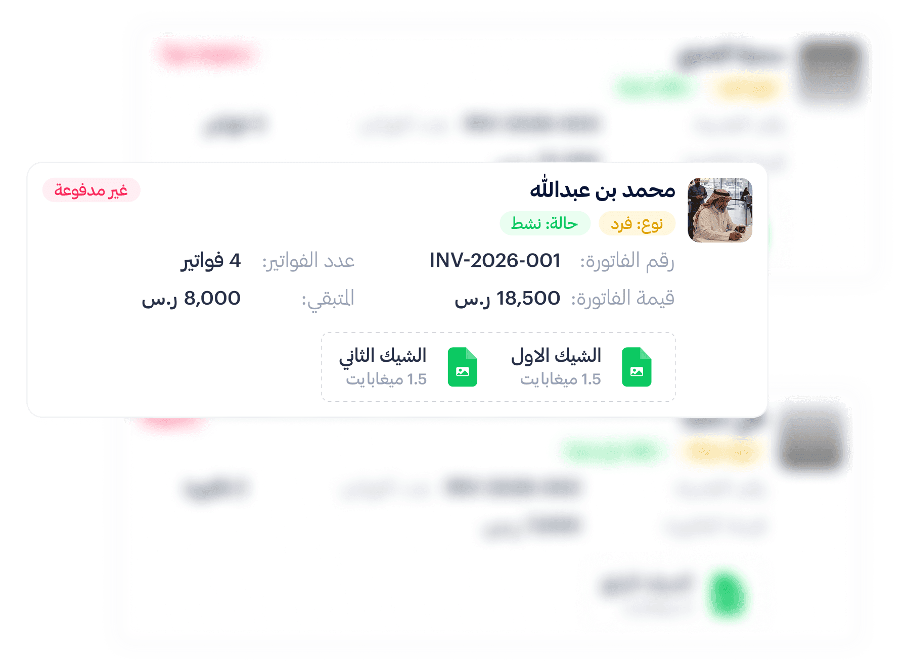 احترافية في التعامل، وسرعة في التحصيل. مركز موحد لملفات العملاء وإصدار الفواتير الإلكترونية؛ أصدر فواتيرك بضغطة زر وحصّل أتعابك عبر روابط دفع آمنة بالريال السعودي.